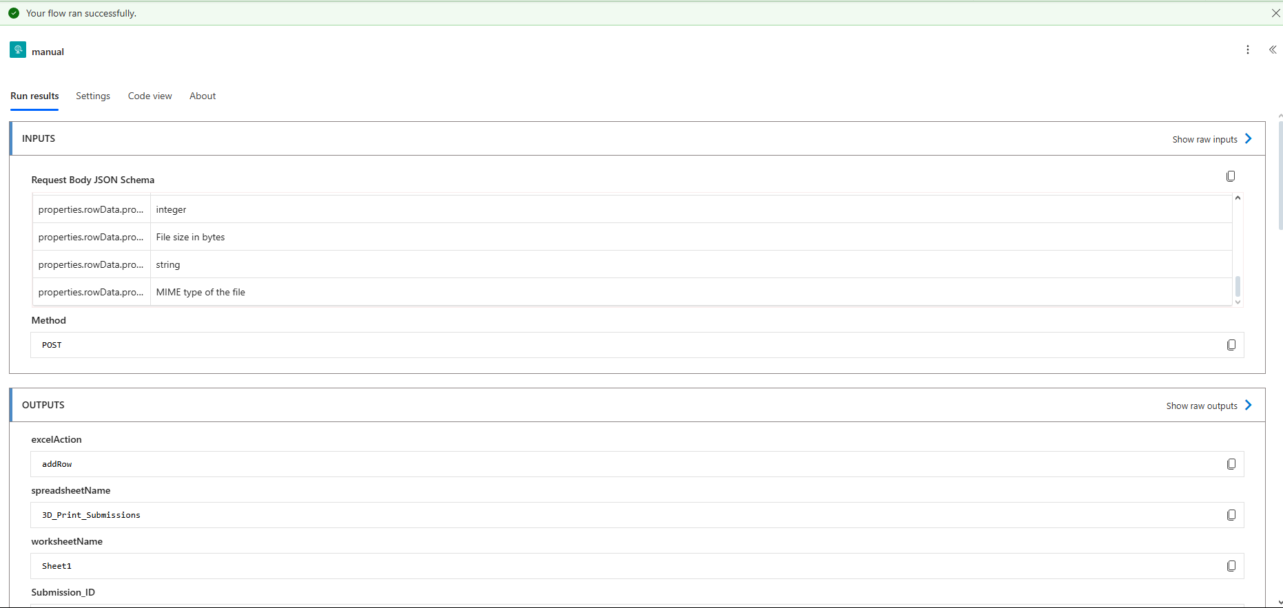 Behind the scenes, the system runs on multiple Power Automate flows. This section focuses on the 3D-printer flow that transfers form data into Excel.